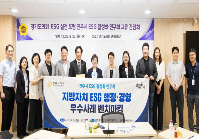 [경기경제신문] 경기도의회 의원연구단체 ‘경기도의회 ESG 실천 포럼’은 25일 경기도의회 중회의실에서 ‘진주시 ESG 활성화 연구회’와 교류 간담회를 개최했다.