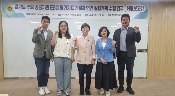 [경기경제신문] 경기도의회 의원연구단체 경기도의회 ESG 실천 포럼(회장 박옥분 의원)은 26일 경기도의회 중회의실에서 ‘경기도 주요 공공기관 ESG 평가지표 개발과 연간 실행계획 수립 연구’ 최종보고회를 개최했다.