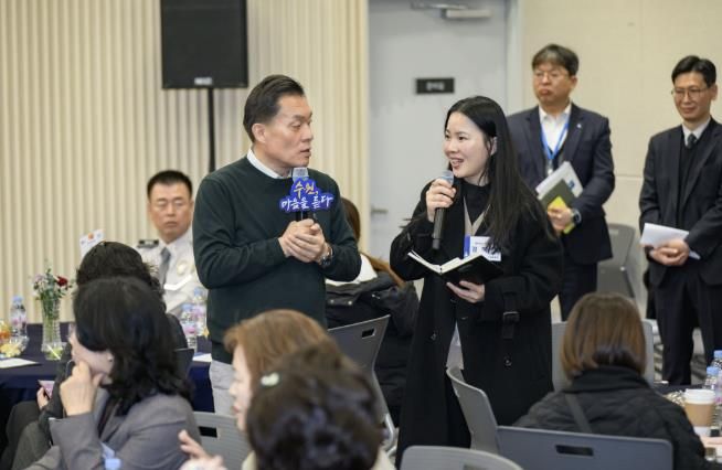 ‘2025 새빛만남- 수원, 마음을 듣다’에서 자주 볼 수 있는 풍경이다. 시민이 건의 사항을 이야기하면 담당 부서 책임자가 건의한 시민과 일정을 조율해 최대한 빨리 현장을 찾아 문제점을 확인하고, 개선 대책을 수립한다.