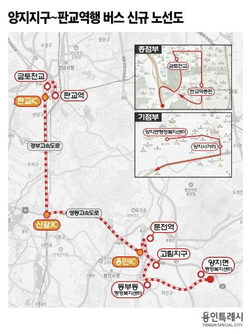 [경기경제신문] 용인 양지지구를 출발해 고림동과 둔전역을 거쳐 성남 판교역까지 운행하는 버스 노선이 확정됐다.