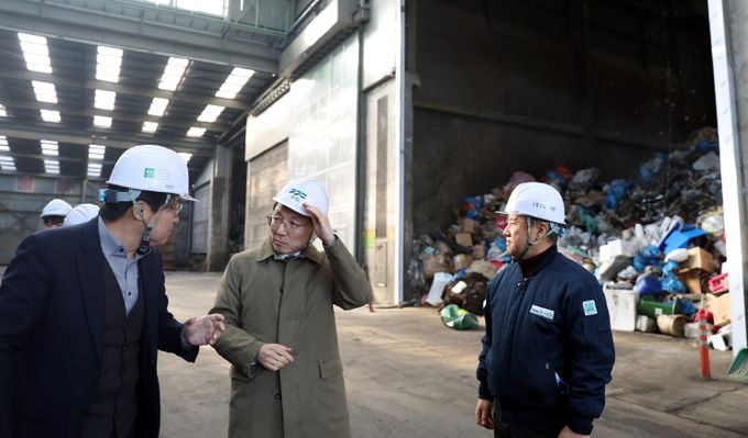 [경기경제신문] 올해부터 수도권 생활폐기물에 대한 ‘직매립’이 금지된 가운데 김성중 경기도 행정1부지사가 13일 평택시의 한 민간처리시설(소각, 재활용)을 찾아 폐기물 처리 현황을 점검했다.