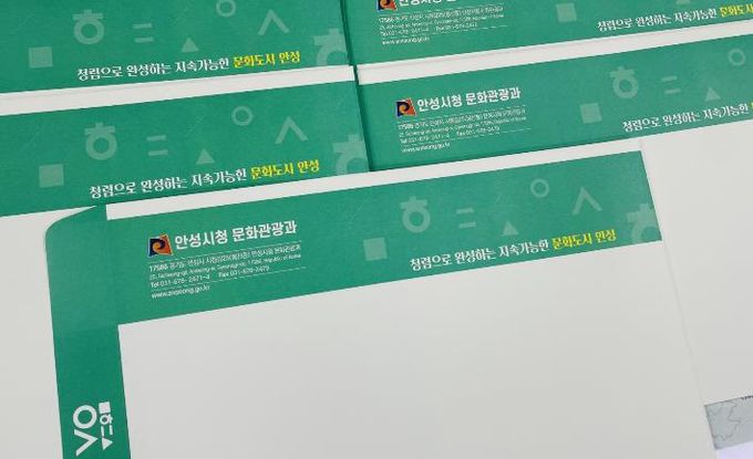 봉투에는 ‘청렴으로 완성하는 지속가능한 문화도시 안성’이라는 공직자의 청렴 의지를 담은 문구가 삽입돼 있으며, 각종 민원서류 발송, 행정 안내문 전달 등 업무 과정에서 청렴 메시지를 시민과 자연스럽게 공유하고 있다.