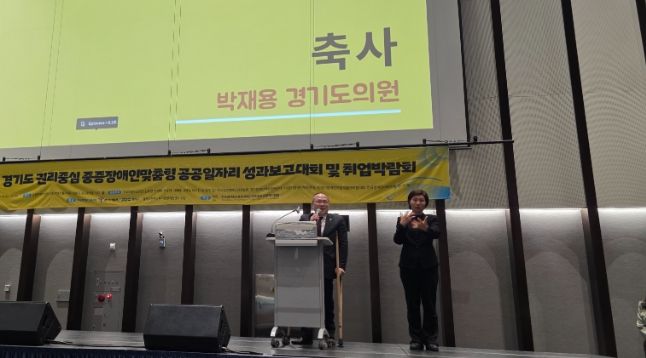 [경기경제신문] 경기도의회 보건복지위원회 박재용 의원(더불어민주당, 비례)은 16일, 수원컨벤션센터에서 열린 ‘2025년 경기도 권리중심 중증장애인맞춤형 공공일자리 성과보고대회 및 취업박람회’에 참석해 축사를 전하고, 중증장애인의 노동권 보장과 권리중심 공공일자리 정책의 지속적인 발전 필요성을 강조했다.