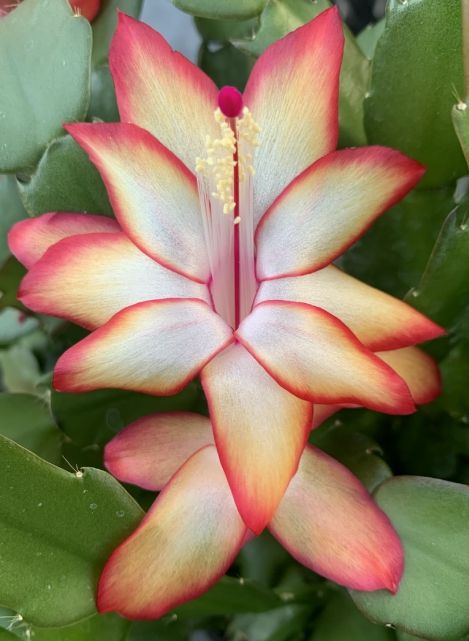 게발선인장은 브라질 열대우림이 원산지인 식물로, 나무나 바위에 붙어 자라며 겨울철에도 꽃을 피운다.