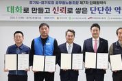 [경기경제신문] 경기도와 도청 3개 공무원노조는 악성민원 피해 특별휴가 부여 등이 담긴 단체협약에 합의했다. 김동연 경기도지사와 김진경 경기도의회 의장, 강순하 경기도청공무원 노동조합 위원장, 백승진 경기도통합공무원노동조합 위원장, 최형곤 전국공무원노동조합 경기도청지부 사무국장은 3일 경기도청 율곡홀에서 제7차 단체협약서에 서명했다. 김동연 지사는 “다들 격무에 시달리고 여러 가지 애로사항이 많을 텐데, 즐겁고 스스로 행복했으면 좋겠다. 그게 제 조직 관리와 인사 목표”라며 “직원들이 도청, 도의회로부터 케어를 받고 있다는 생각과 여건을 만들어야 한다. 줄탁동시(啐啄同時. 병아리가 알에서 나오기 위해서는 새끼가 안에서 울고 동시에 어미닭이 밖에서 쪼아야 한다)처럼 바깥에서 여건을 끊임없이 만들려고 노력하고 안에서는 스스로 공직생활을 하면서 즐거움을 찾는 것이 나아가 도민들에게도 좋은 일이라고 생각한다”고 말했다. 김 지사는 이어 “짧은 기간 동안에 서로 좋은 대화를 나누고 수용률 98.7%라는 결과를 받게 돼 기쁘다. 앞으로 끊임없이 대화를 나눴으면 좋겠고 그렇게 하기 위해 서로 간에 신뢰했으면 한다”며 “직원들과 한 약속은 반드시 지킬 테니 믿어주시길 바란