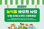 [경기경제신문] 화성특례시는 저소득 취약계층의 영양 개선과 지역 농산물 소비 활성화를 위해 22일부터 ‘2026년 농식품 바우처 지원사업’ 신청을 받는다. 지원 대상은 생계급여(기준 중위소득 32% 이하) 수급자 중 임산부, 영유아, 아동, 청년을 포함한 가구로 1인 가구 월 4만 원, 4인 가구 월 10만 원 등 가구원 수에 따라 차등 지원된다. 지원 기간은 1월부터 12월까지 12개월이다. 지원 품목은 국산 채소, 과일, 육류, 잡곡, 두부류 등 신선 농산물을 구매할 수 있는 전자카드 형태로 제공되며, 농협 하나로마트, 편의점 등에서 사용할 수 있다. 지원 신청은 22일부터 주소지 관할 출장소 및 읍·면 행정복지센터를 방문하거나 온라인, ARS(☎1551-0857) 등을 통해 다양한 경로로 신청할 수 있으며, 2025년 사업 이용 가구로 지원 자격요건을 충족하는 경우 별도의 신청 절차 없이 자동 신청 처리될 예정이다. 기타 자세한 사항은 화성시청 농식품유통과 및 주소지 관할 출장소·읍·면 행정복지센터로 문의하면 된다. 신태식 농식품유통과장은 “이번 농식품 바우처 지원사업을 통해 저소득 취약계층의 건강한 식생활을 돕고 지역 농산물 소비를 촉진하는 데 기여